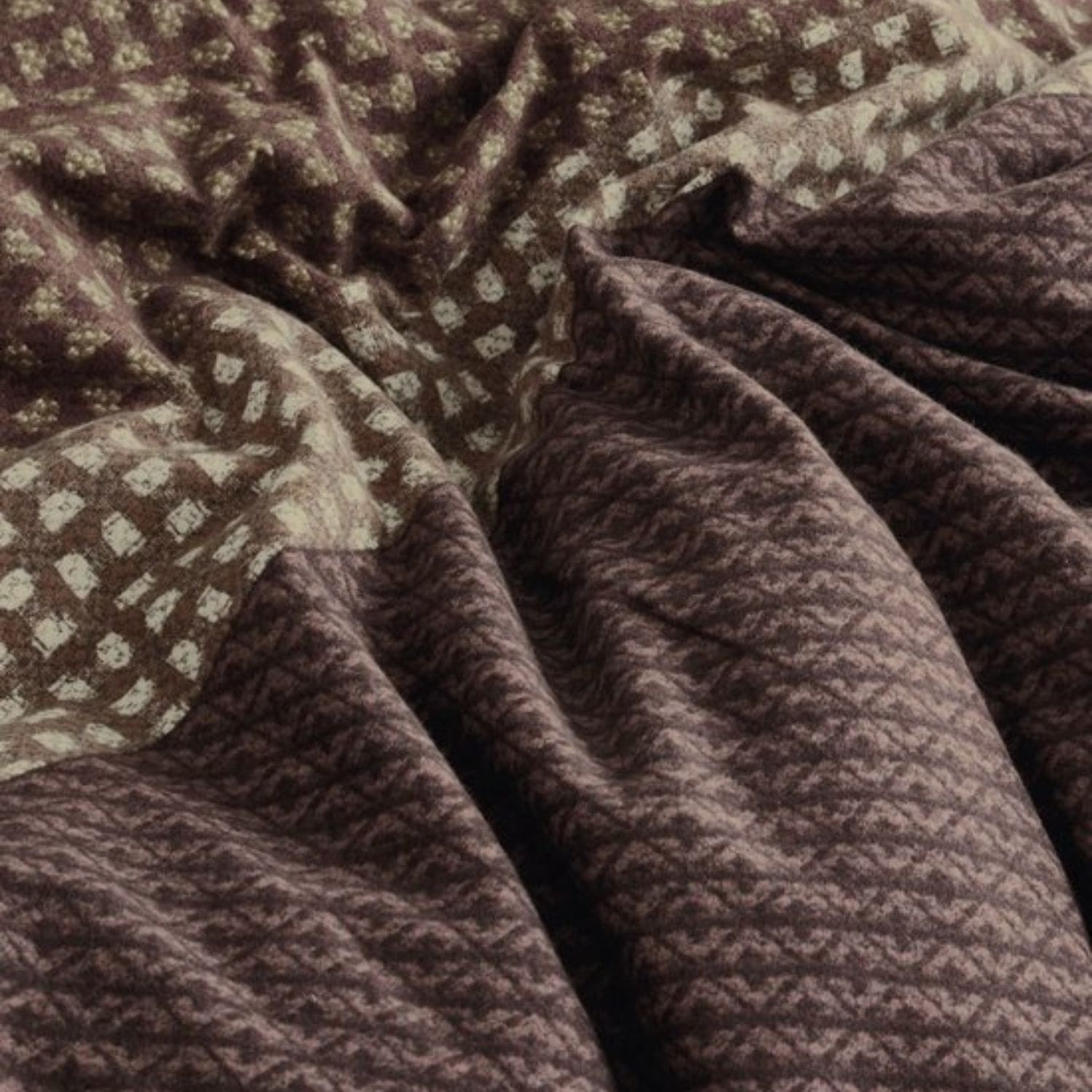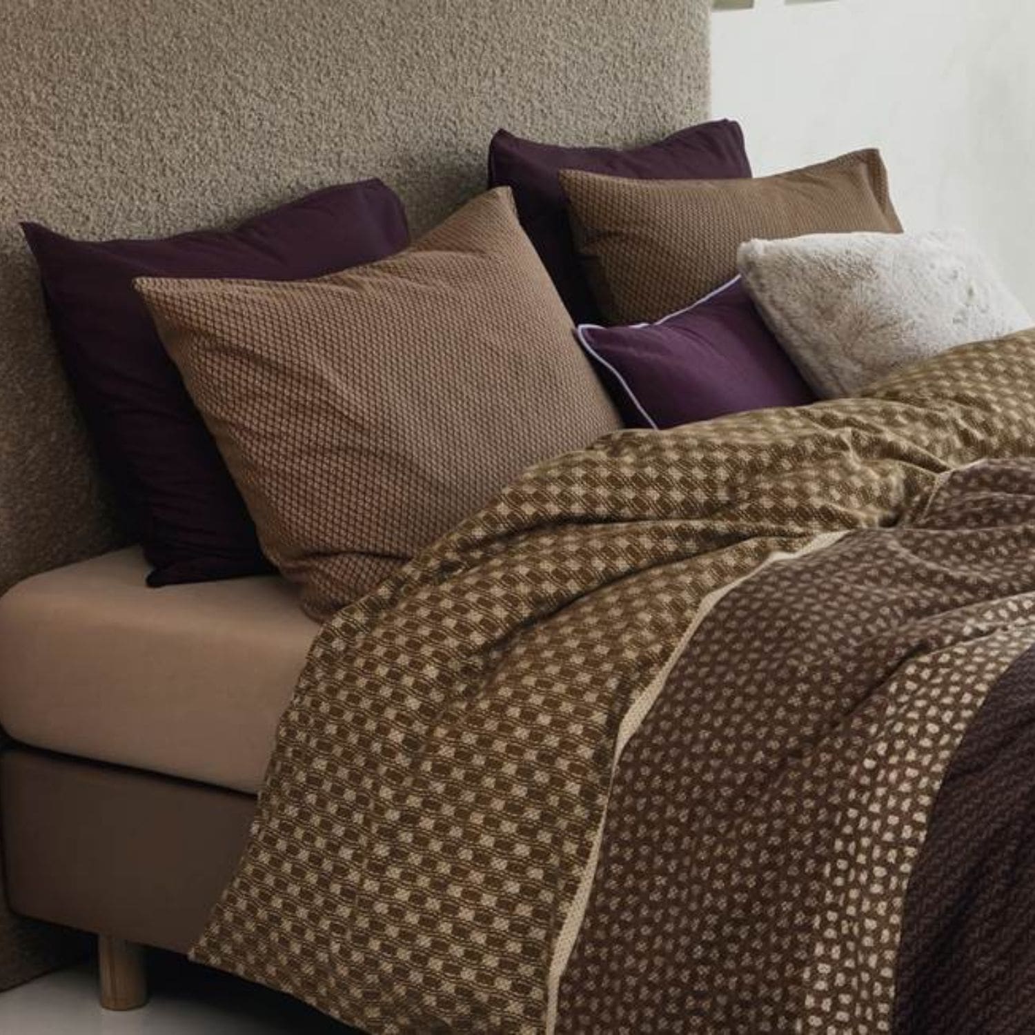Droom iedere avond heerlijk weg onder het Beddinghouse Fera flanel dekbedovertrek. Het dessin heeft een modern banenpatroon in warme bruintinten, wat een sfeervolle en rustgevende uitstraling in de slaapkamer creëert. Van dichtbij zijn subtiele geometrische details zichtbaar, waardoor het dekbedovertrek eenvoudig in diverse interieurstijlen past, zoals een modern of landelijk interieur.