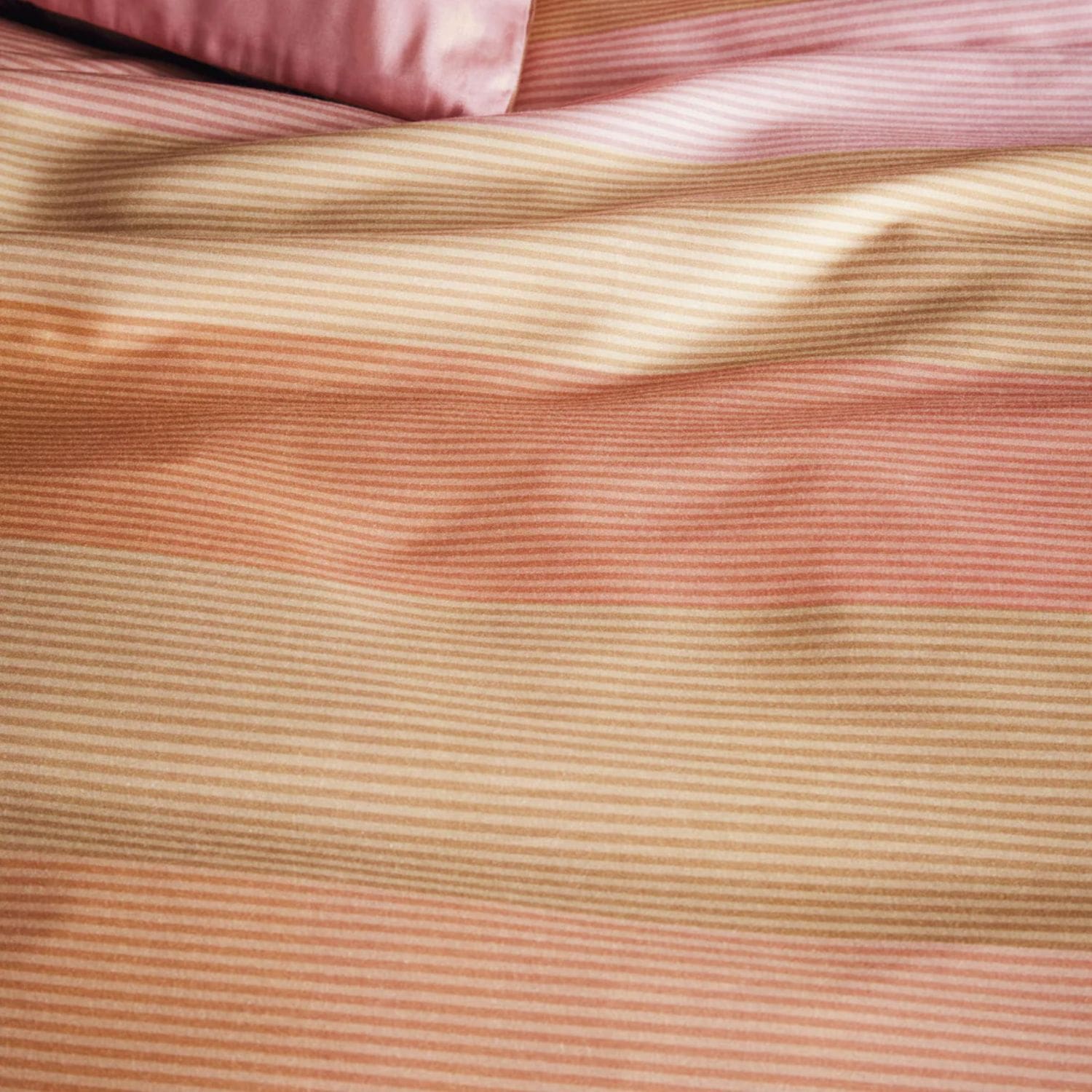Voor liefhebbers van strepen die net dat beetje extra willen, is het Beddinghouse Times Square dekbedovertrek uit de Dutch Design collectie een absolute must-have. Het ontwerp bestaat uit brede horizontale strepen met vloeiende kleurverlopen van zachte roze tinten tot subtiele gouden accenten. Dit sfeervolle dessin brengt een stijlvolle en rustige uitstraling in je slaapkamer. De achterzijde is effen lichtroze, waardoor je eenvoudig een luxe omslag kunt creëren. Het dekbedovertrek is vervaardigd uit 70% lyocell en 30% katoen-satijn, een hoogwaardige en duurzame combinatie. Lyocell wordt gemaakt uit eucalyptus en staat bekend om zijn ademende, vochtabsorberende en huidvriendelijke eigenschappen. De mix met katoen-satijn geeft een prachtige glans en een zijdezachte touch, waardoor je iedere nacht geniet van optimaal slaapcomfort. Dankzij de dubbel doorlopende instopstrook blijft het dekbedovertrek netjes op zijn plaats, ook bij langere dekbedden. Het overtrek is geschikt voor alle lengtematen, met een totale lengte van circa 260 cm.
