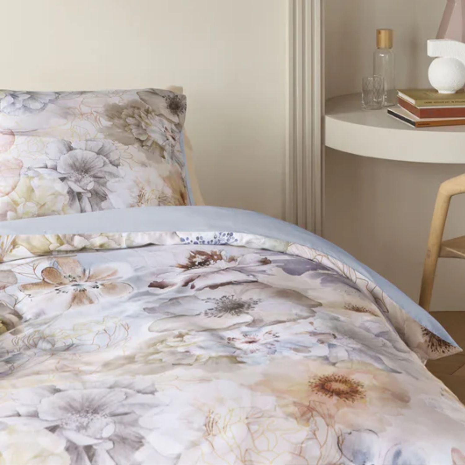Het Kardol Kelmscott dekbedovertrek is een romantische blikvanger die rust en elegantie in je slaapkamer brengt. Het ontwerp toont een rijk gevulde bloemenprint in zachte aquareltinten, waarbij iedere bloem uniek is. De verfijnde lijnen en subtiele kleurschakeringen zorgen voor een gelaagd en artistiek effect. De effen lichtblauwe achterzijde maakt het mogelijk om eenvoudig een harmonieuze en luxe omslag te creëren. Het dekbedovertrek is vervaardigd uit 100% katoen-satijn, een zijdezacht en ademend materiaal dat dankzij de satijnbinding een prachtige glans heeft. De stof voelt heerlijk soepel aan en biedt iedere nacht optimaal slaapcomfort. Dankzij de dubbel doorlopende instopstrook met extra lengte blijft het overtrek netjes op zijn plaats, ook bij extra lange dekbedden. Kardol by Beddinghouse staat bekend om zijn verfijnde ontwerpen en hoogwaardige kwaliteit. Elk seizoen brengt het merk een unieke collectie die modern design combineert met een warme, elegante sfeer.