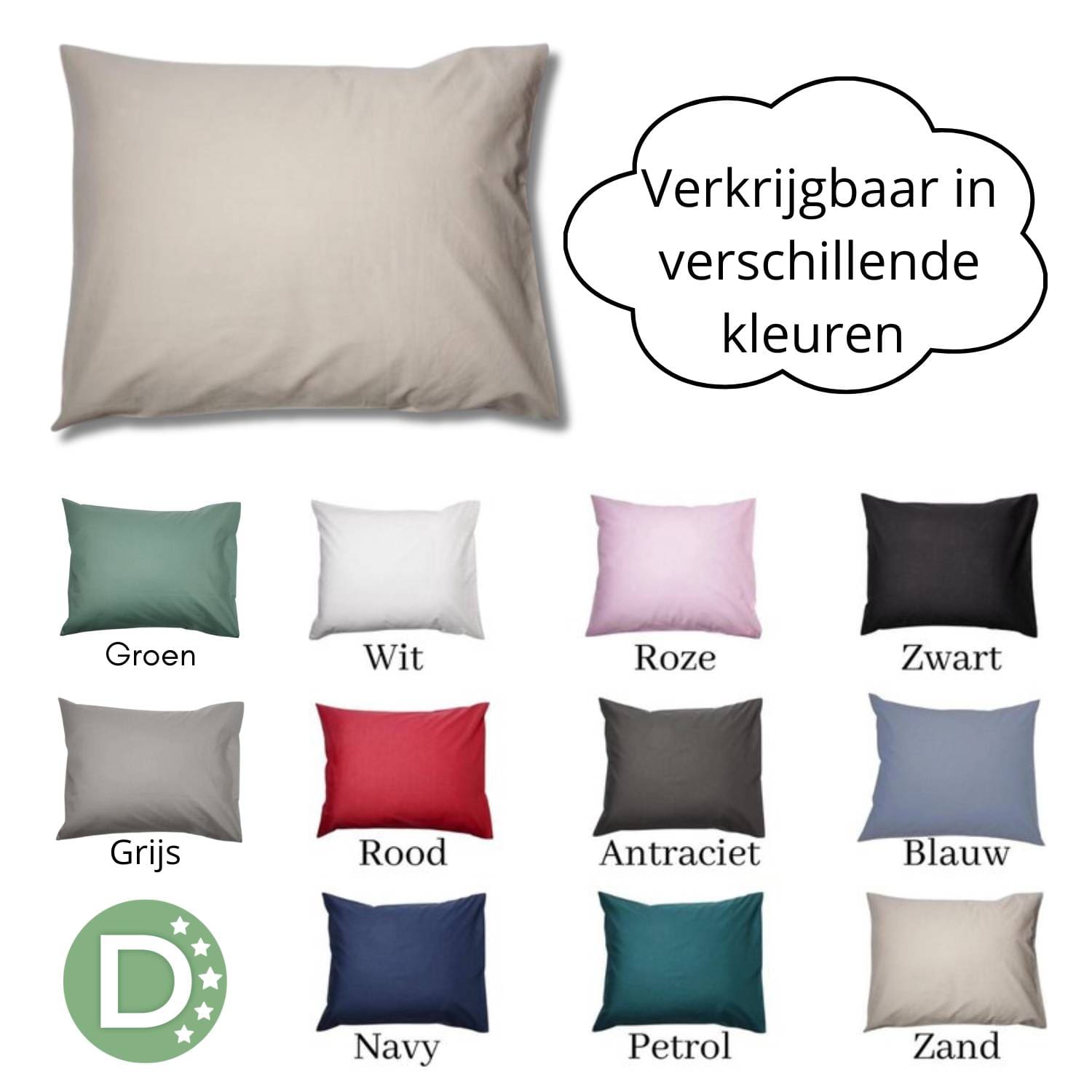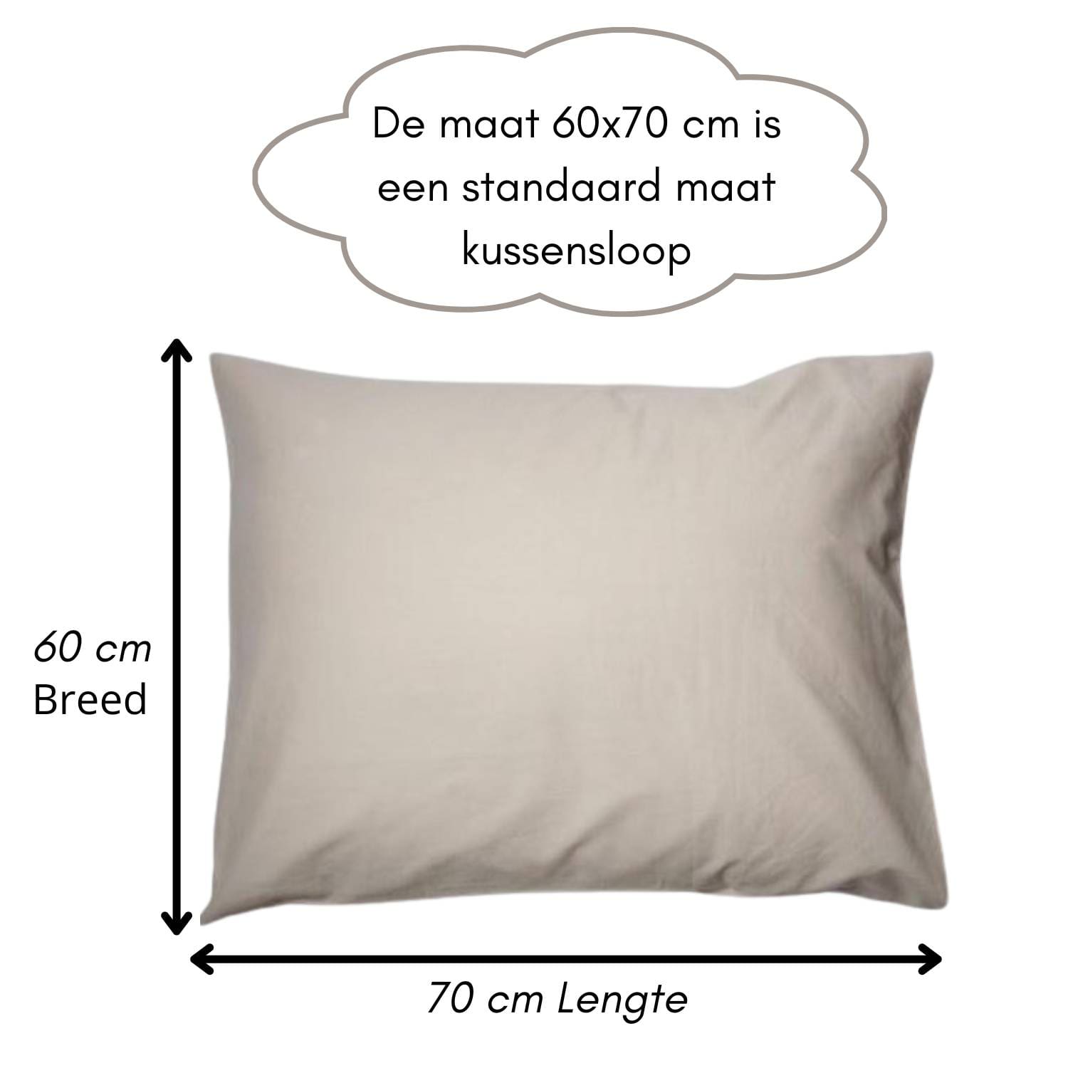 Antwoord: Ja, dankzij de standaardafmeting van 60x70 cm met envelopsluiting past het kussensloop perfect op vrijwel elk hoofdkussen.