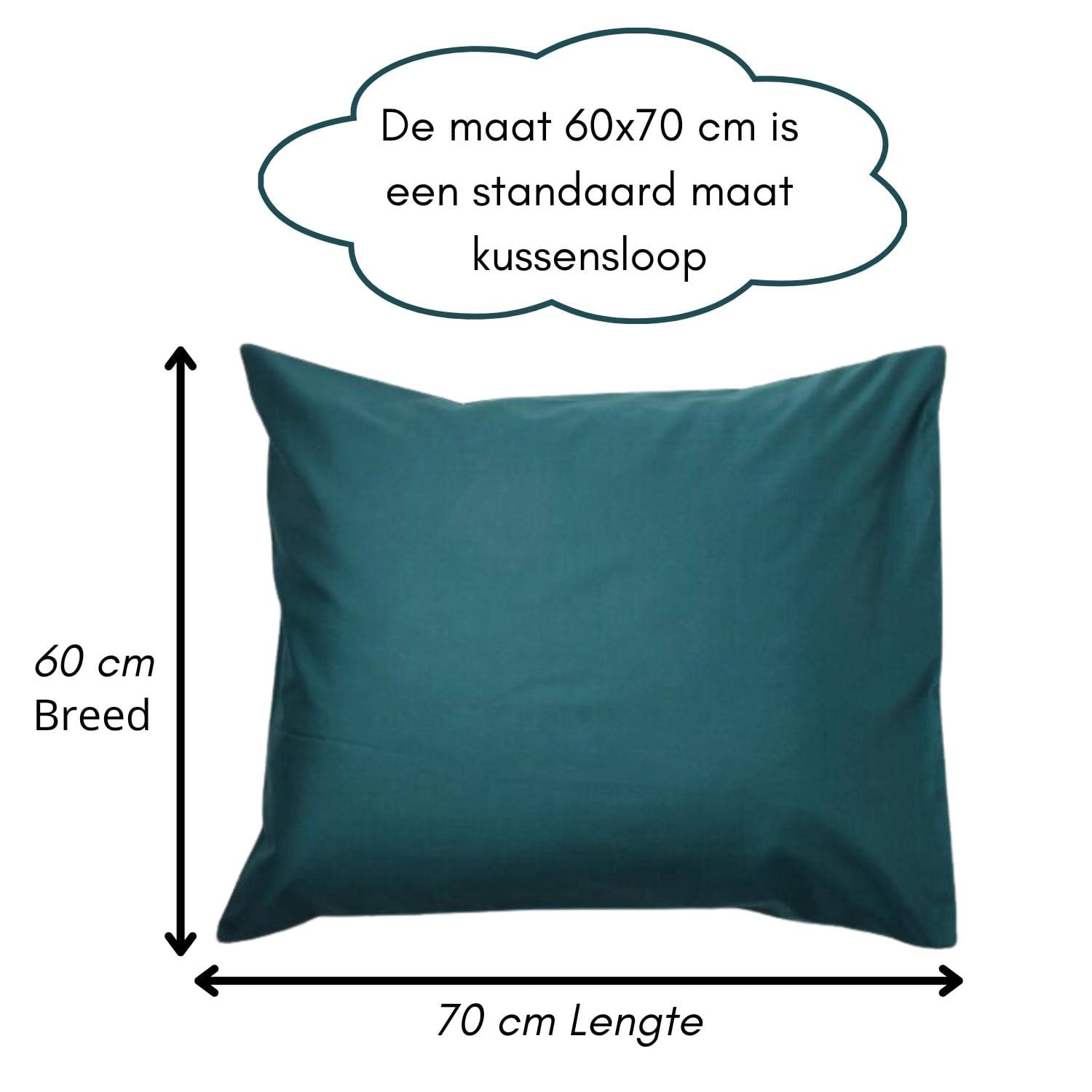 Onze kussenslopen zijn 60x70 cm en passen perfect om standaard Nederlands hoofdkussen. Heb je een afwijkende maat? Bekijk dan ons assortiment kussensloop hotelkwaliteit of maatwerkopties voor extra grote of kleinere kussens.