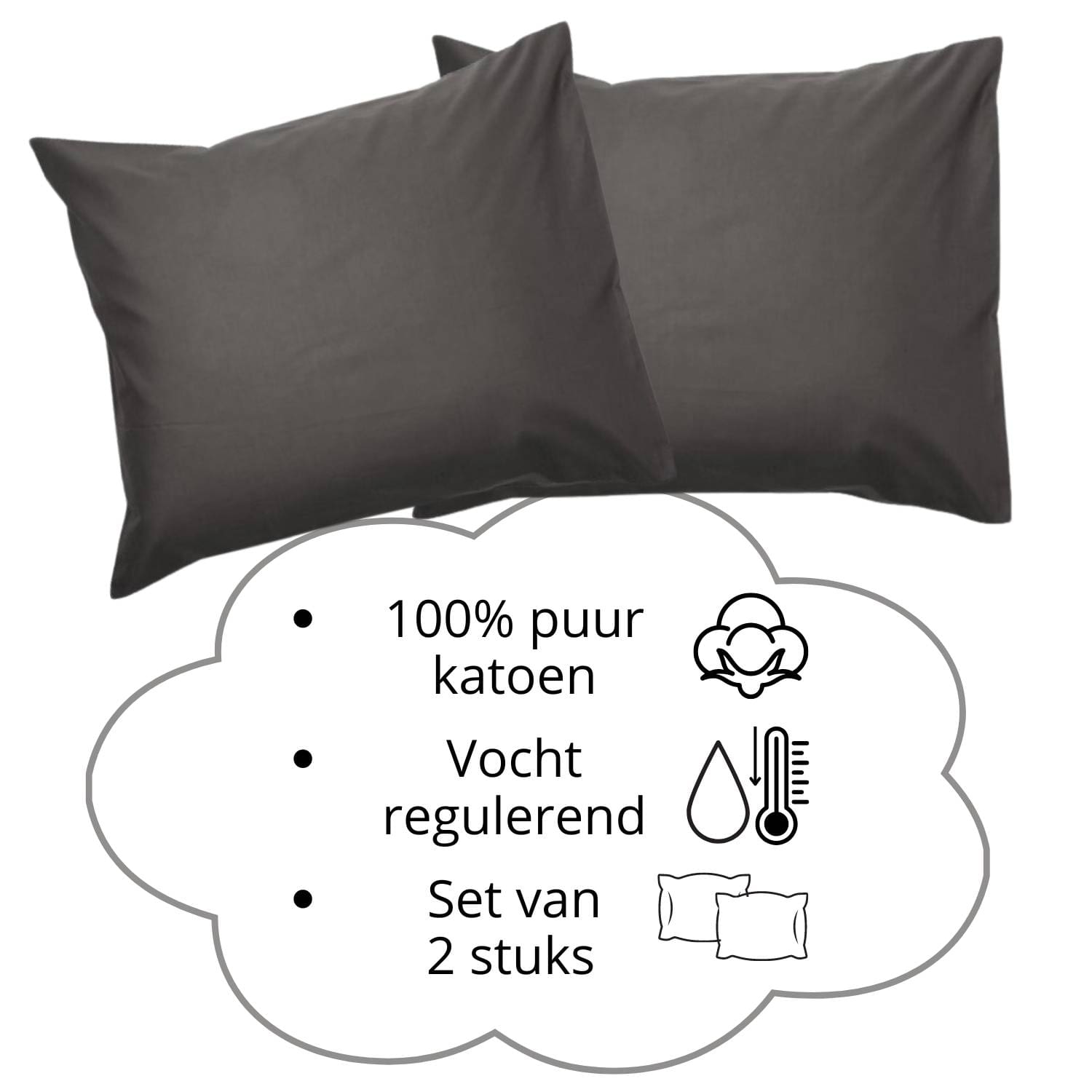 Katoen is van nature vocht absorberend en ademend. Het reguleert de warmte, zodat je het in de zomer lekker koel houdt en in de winter niet afkoelt. Onze slopen zijn ideaal voor iedereen die snel zweet of graag op een droog kussen ligt. Je zult merken dat je minder beweegt en langer in een diepe slaap verbleven blijft.