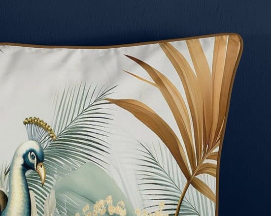 Het “Dana” dekbedovertrek van Descanso combineert een verfijnd patroon van bladeren en vogels in zachte, natuurlijke kleuren. De voorzijde trekt meteen de aandacht, terwijl de achterzijde in een bijpassende uni-kleur voor rust zorgt.