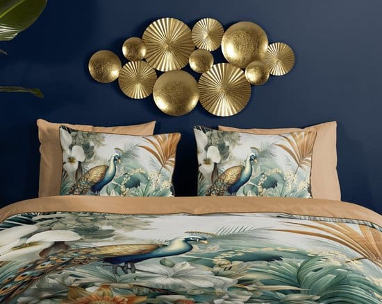 Het overtrek “Dana” straalt een verfijnde romantiek uit. Op de voorzijde siert een subtiel botanisch dessin met bladeren en vogels in rijke, natuurlijke tinten. De achterzijde is afgewerkt in een zachte, uni-kleur die harmonieus aansluit bij elke slaapkamerstijl. Dankzij de luxe bies (piping) rondom oogt het geheel professioneel afgewerkt en extra stevig.
