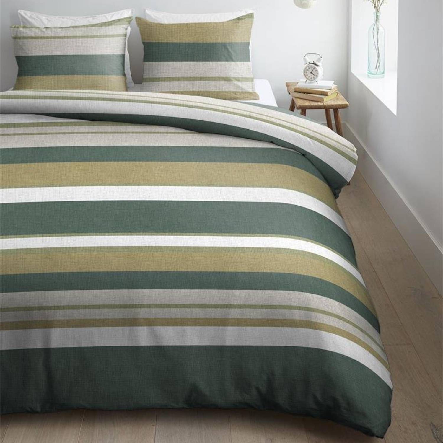 Met het Dekbedovertrek Dani van Ambiante kies je voor een perfecte mix van luxe, duurzaamheid en comfort. Het landelijk dessin met horizontale strepen in warme groene tinten geeft je slaapkamer karakter, terwijl 100% katoen en een 144 TC je iedere nacht in stijl en zachtheid omhullen. Voeg een hoeslaken katoen satijn en een hoeslaken 90×200 toe voor de ultieme hotelervaring thuis.