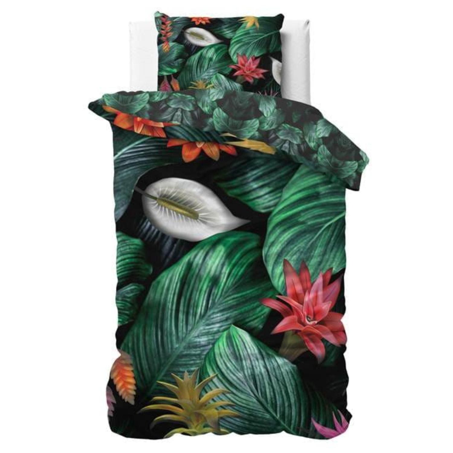 Het geheim van dit dekbedovertrek schuilt in 100% katoen satijn. Deze stofsoort combineert een luxe glans met een zijdezacht weefsel. Dankzij het dichte satijnbinding is de stof extra sterk en toch licht en ademend. Of het buiten nu warm of koud is: katoen satijn reguleert de temperatuur, voert vocht af en voelt altijd aangenaam koel aan. Zo ben je verzekerd van een ongestoorde slaap, het hele jaar door.