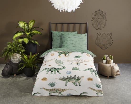 “Mijn dochtertje kijkt elke avond reikhalzend uit naar haar dino-avontuur. Het dekbedovertrek is zo zacht en duurzaam dat het er na meer dan vijftig wasbeurten nog als nieuw uitziet.” – Sophie, mama van Milou