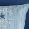 Stel je voor: je stapt je slaapkamer binnen en je ogen laten zich ontvallen op een serene print in blauwe houten look, met in het midden een stijlvolle zeester. Daarboven prijkt in sierlijke letters “Coastal Breeze” en “Oyster Bay”. De achterzijde is fris wit, waarmee je eindeloze combinatiemogelijkheden hebt voor een luxueuze omslag. Voel je de ontspannen zeebries al?
