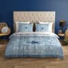 Met de bijpassende kussenslopen kun je spelen met je persoonlijke stijl. Combineer de blauwe houten look kussensloop met de witte achterzijde voor een frisse twist of kies voor een uniforme uitstraling met beide dezelfde print. Zo creëer je eenvoudig een hotelachtige ambiance, passend bij elk seizoen.