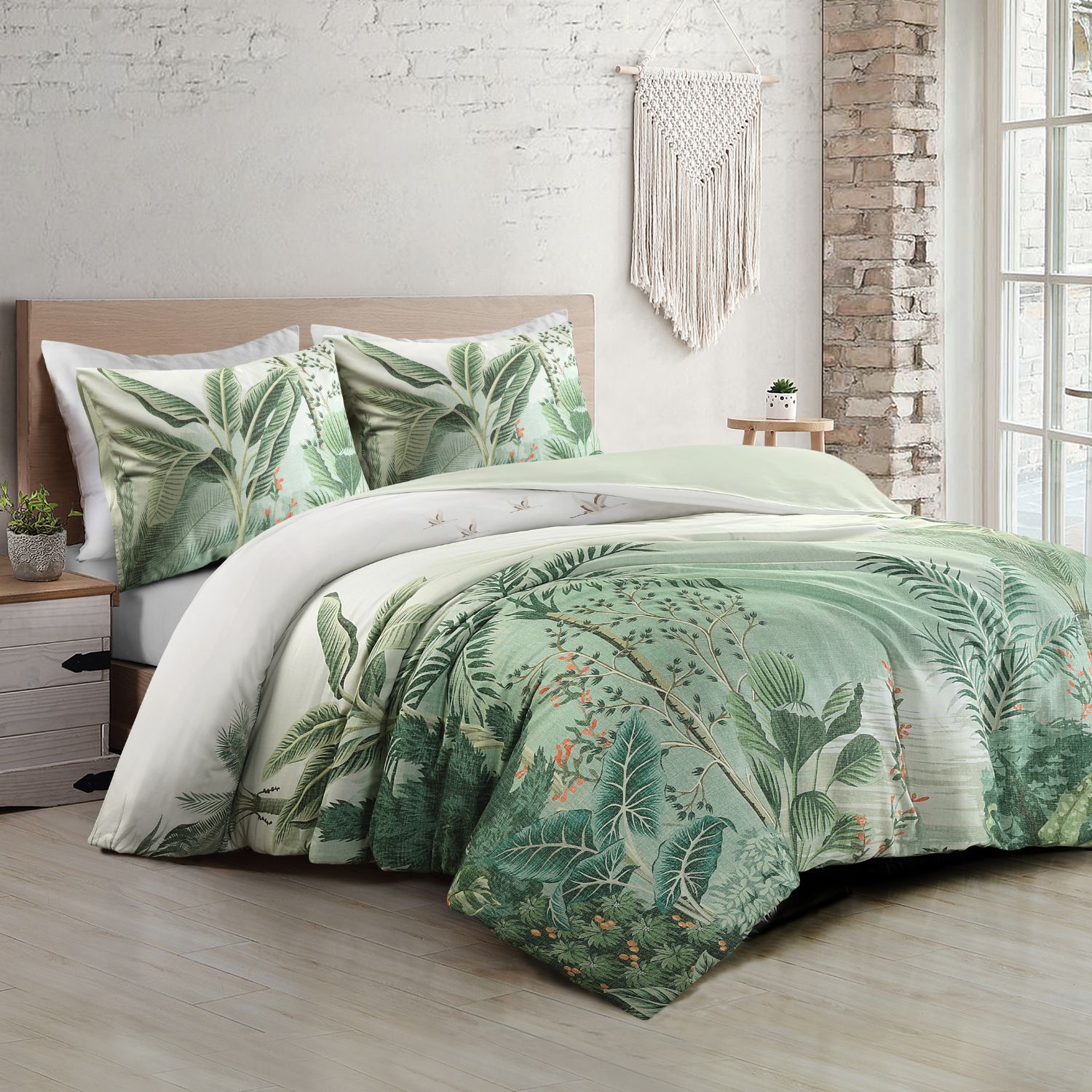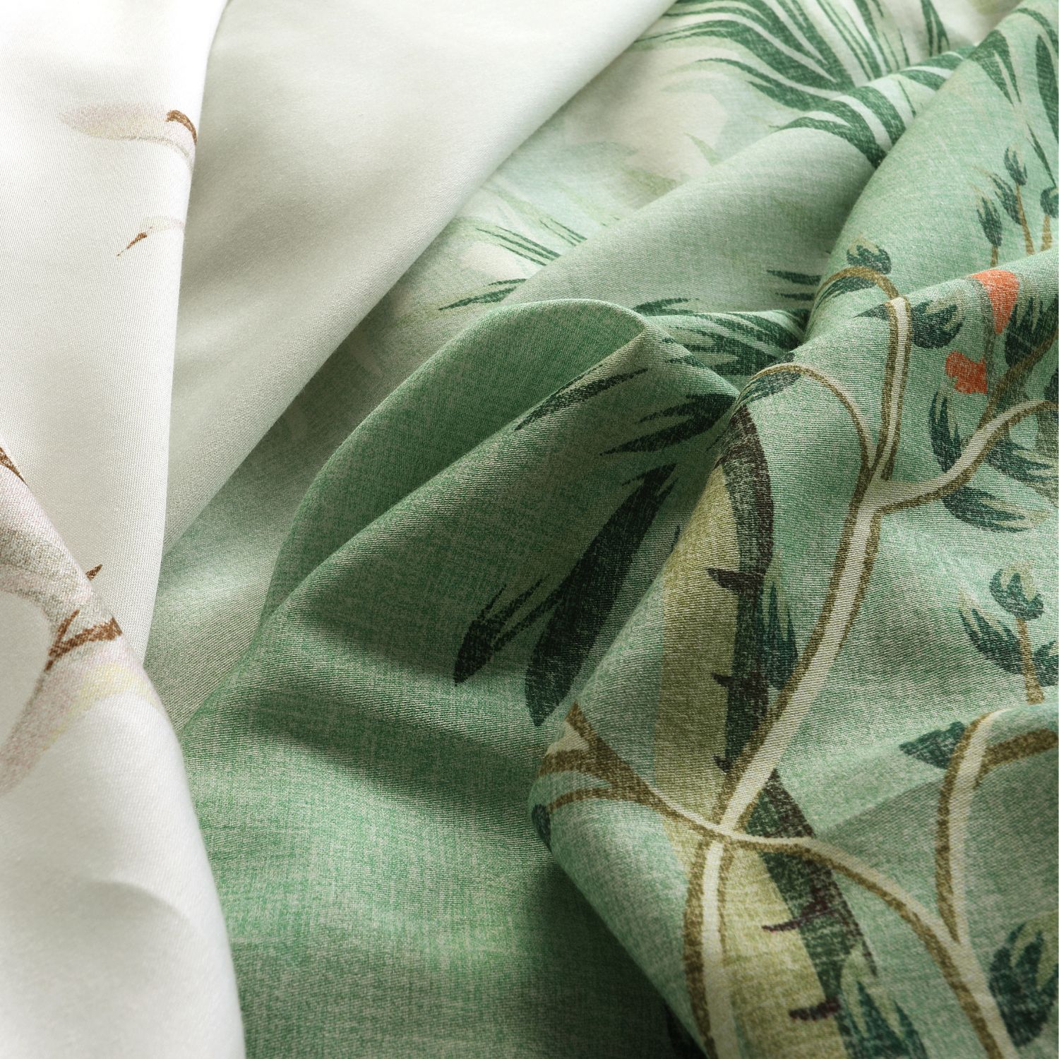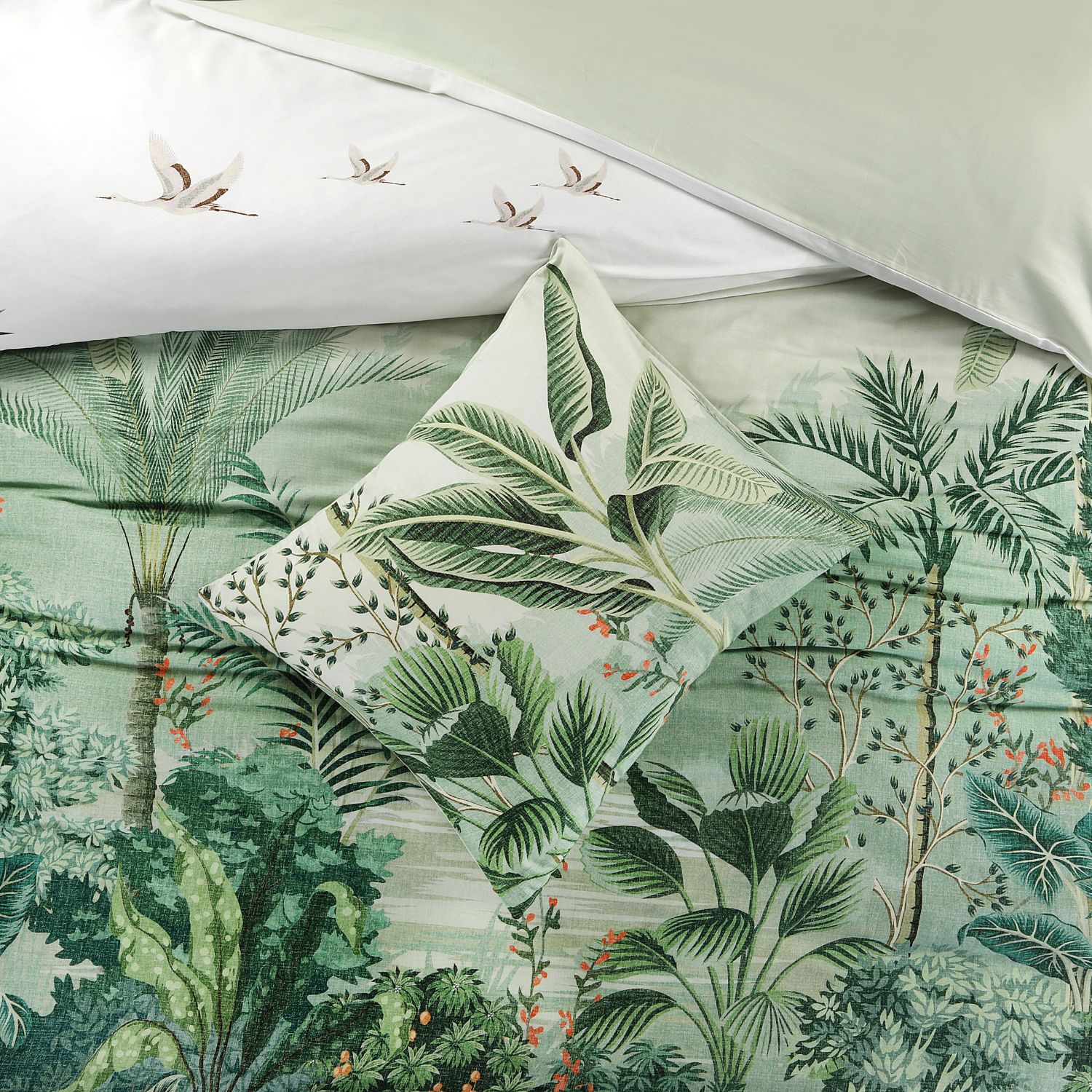 Dekbedovertrek Jungle met zijn botanische print geeft je slaapkamer een natuurlijke sfeer! Het dekbedovertrek is gemaakt van 100% luxe katoen-satijn en heeft dus ook de fijne eigenschappen van katoen. Het is ademend en vocht absorberend. Een katoen-satijnen dekbedovertrek voelt zachter en gladder aan dan een katoenen dekbedovertrek. Door de speciale weeftechniek ontstaat er een mooie glans. Het dekbedovertrek straalt luxe uit en is zeer comfortabel.