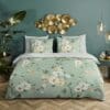 Het Sineza dekbedovertrek combineert een serene groene achtergrond met subtiele bloemenpatronen in wit, geel en roze. Dit omkeerbare design geeft je de keuze tussen een levendige bloemenprint of een rustige, effen groene zijde. Met deze veelzijdigheid voeg je moeiteloos een vleugje natuur en professionaliteit toe aan elke slaapkamerstijl.