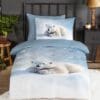 De prachtige print van een liggende ijsbeer in een sneeuwlandschap brengt een winterse sfeer in elke kinderkamer. Inclusief dubbel doorlopende instopstrook en een bijpassende kussensloop. Oeko-Tex gecertificeerd, dus veilig en huidvriendelijk.