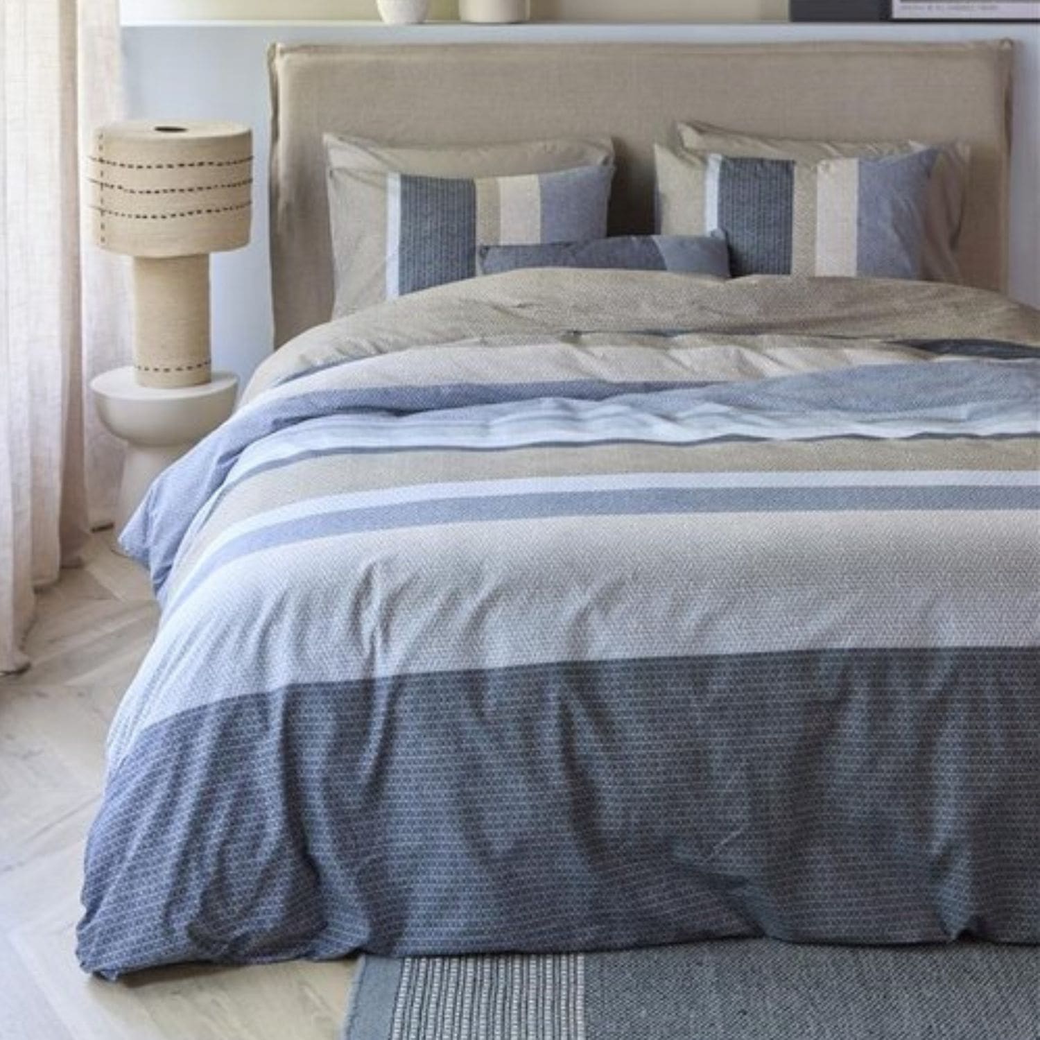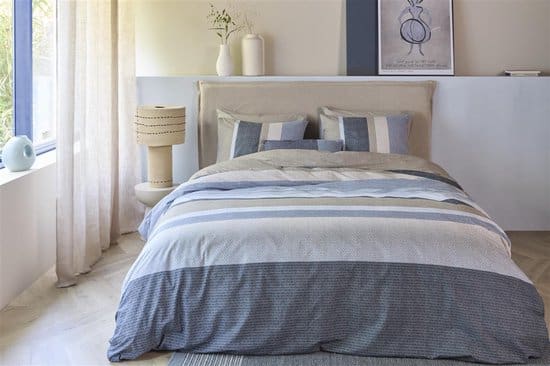 Het Beddinghouse Jorren dekbedovertrek combineert stoere weefstructuren met subtiele tinten. De afwisseling van lijnen in blauw, grijs en beige geeft een harmonieuze touch, ideaal voor: