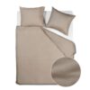 De voorzijde is gemaakt van 100% polyester velvet, een chique, fluweelachtige stof met een subtiele glans. De achterzijde bestaat uit 100% katoen, dat ademend en vochtabsorberend is en bijdraagt aan een optimaal slaapcomfort.