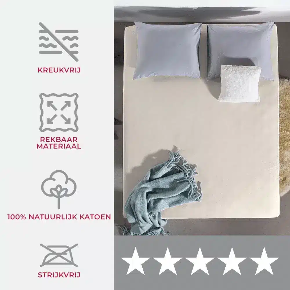 “Ik dacht dat ik alles al had geprobeerd, maar dit hoeslaken maakte echt het verschil. Eindelijk geen koude randen meer en de stof voelt aan als een hotelkwaliteit dekbed.” – Marlies, tevreden klant