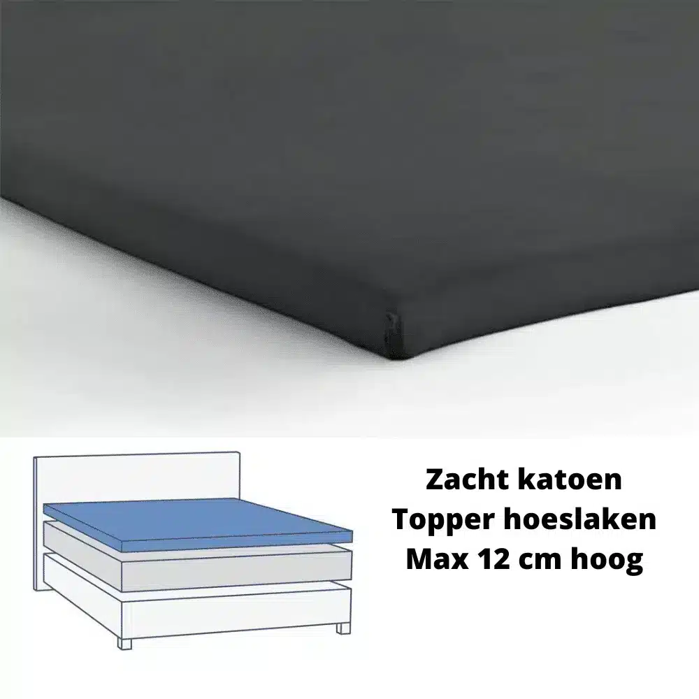 Sleeps Zacht Katoenen Topper Hoeslaken Antraciet 180×200 cm – Glad Katoen – Perfecte Pasvorm – Heerlijk Zacht