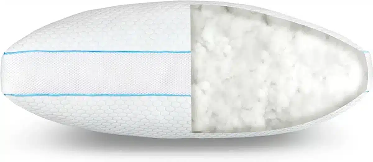 Dankzij de medium hardheid biedt het kussen voldoende tegenwicht en voorkomt het doorzakken. Je wervelkolom blijft in een neutrale positie.