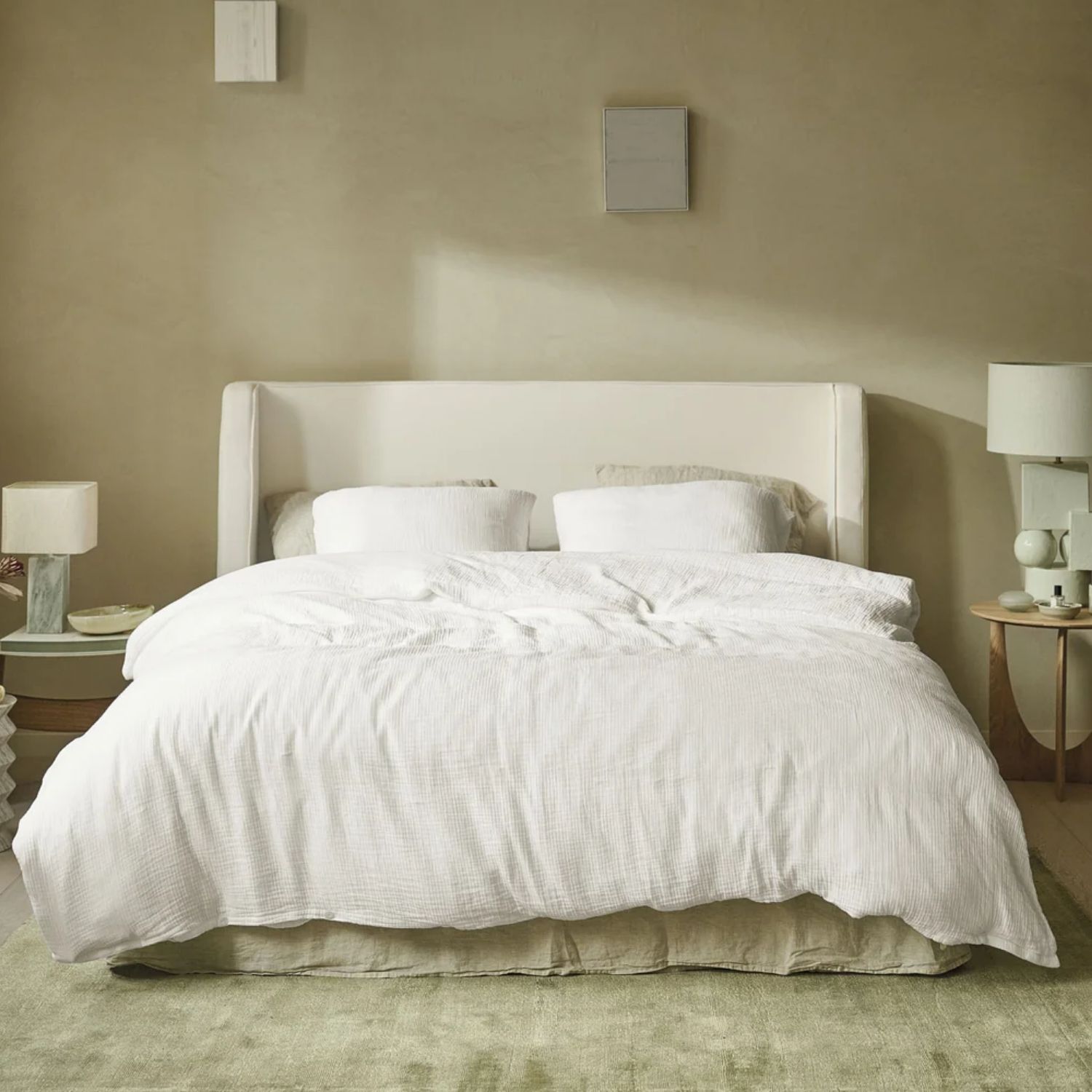 Het VTWonen Gentle Embrace dekbedovertrek brengt rust en eenvoud in de slaapkamer. De effen witte kleur en de subtiel gekreukte structuur zorgen voor een natuurlijke, zachte uitstraling. Het 100% mousseline katoen voelt luchtig en comfortabel aan, ademt goed en is strijkvrij. Perfect voor wie houdt van een serene, Scandinavische sfeer en ontspannen slapen.