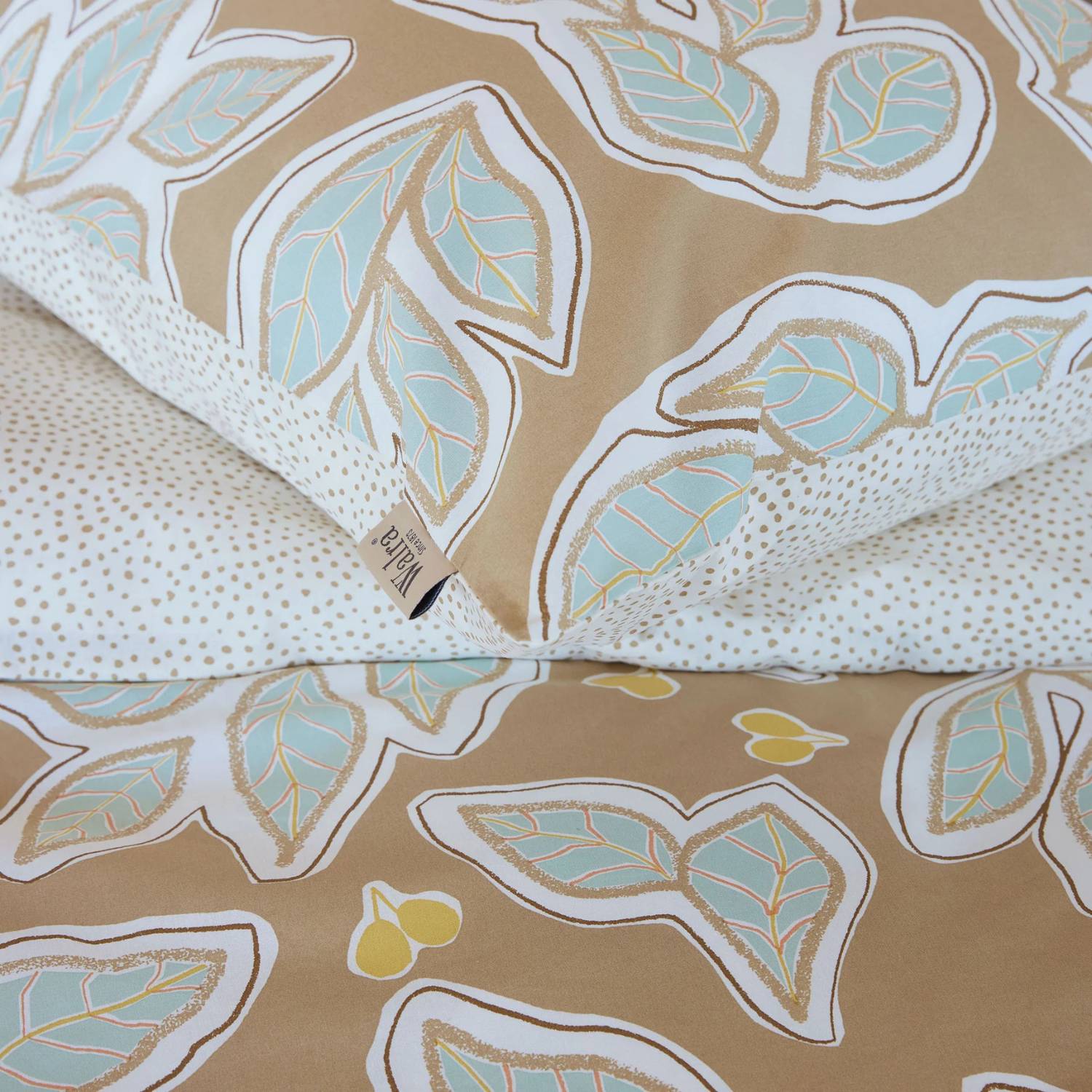 Het Lovely Leaves dekbedovertrek is vervaardigd uit 100% renforcé katoen. Deze stof heeft een dichtgeweven binding, wat resulteert in een stevige, maar zijdezachte kwaliteit. Dankzij de ademende structuur en vochtregulerende eigenschappen wordt zweet afgevoerd terwijl je slaapt, zodat je lichaam de hele nacht een aangename temperatuur behoudt.