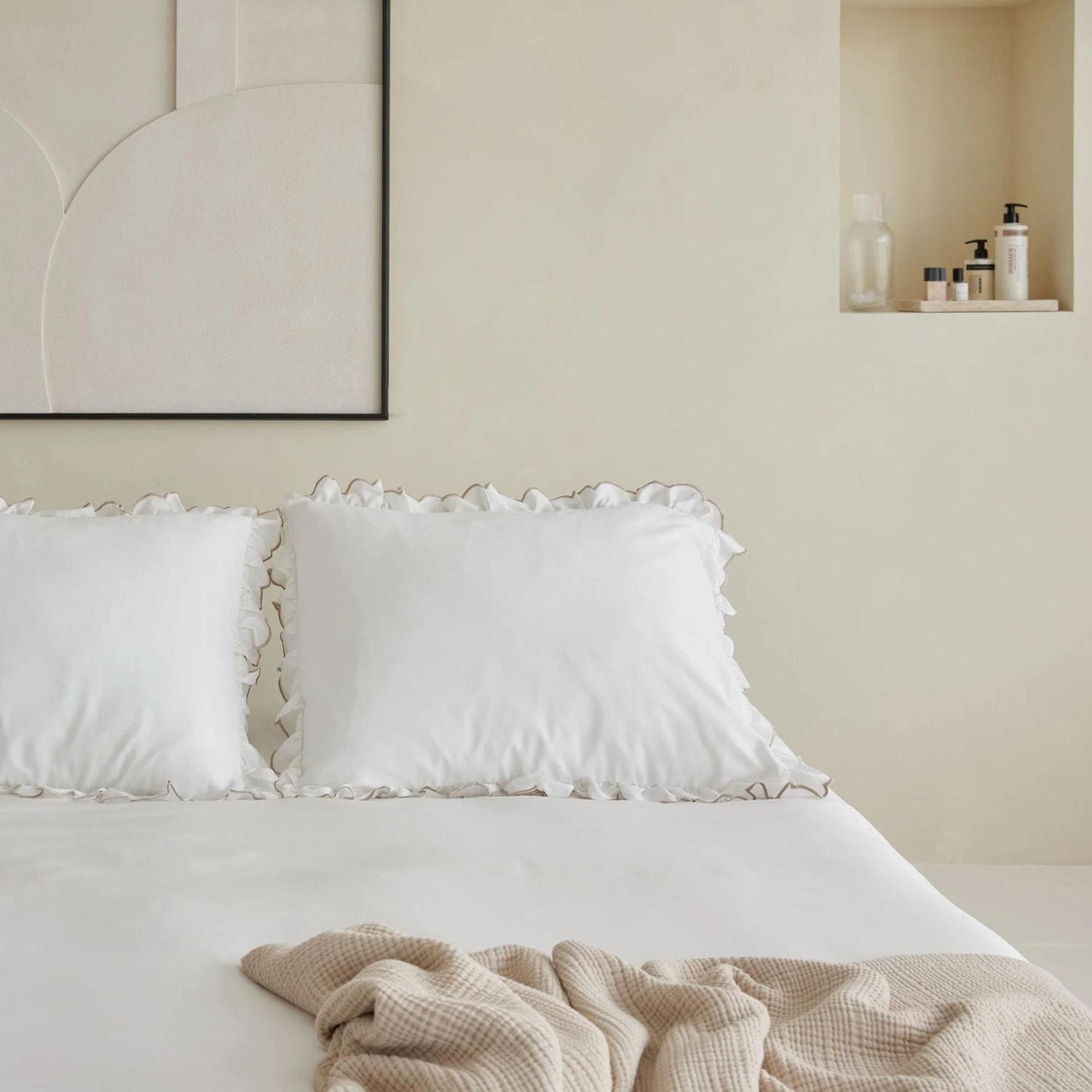 Bij Droomtextiel combineren we al jaren vakmanschap met hoogwaardige materialen. Het Real Romance dekbedovertrek straalt luxe en professionaliteit uit: de effen witte kleur, afgewerkt met een subtiel zandkleurig volantdetail, geeft je slaapkamer direct een elegante, hotelachtige sfeer. Dankzij de rustgevende uitstraling val je ’s avonds sneller in slaap en word je ’s ochtends verfrist wakker, klaar voor een nieuwe dag.