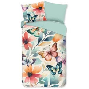 Good Morning Dekbedovertrek bloemen en vlinders - Multi - 140x200/220 cm - Katoen
