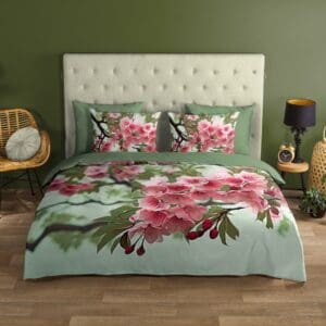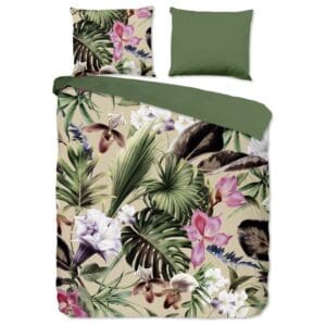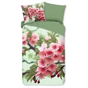 Good Morning Dekbedovertrek Bloemen Groen - 140x200/220 cm - Katoen